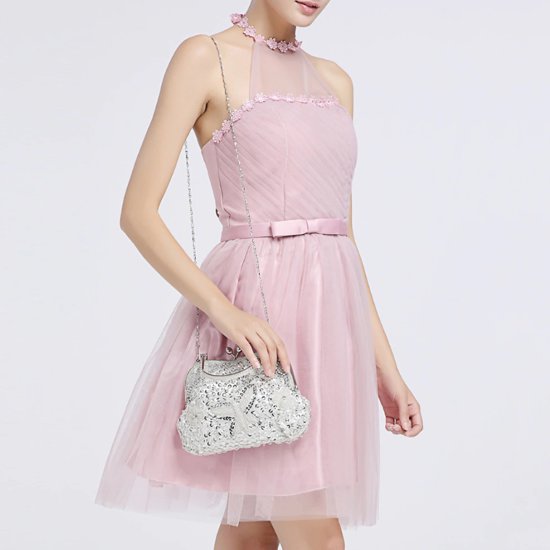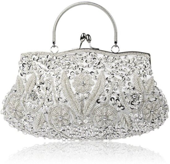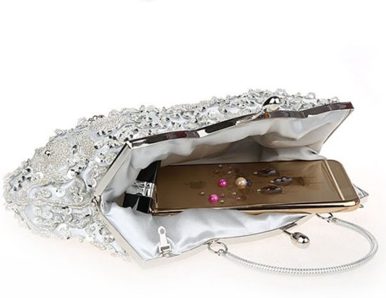 De clutch is ongeveer 26cm x 15 cm en is groot genoeg om al je noodzakelijke spulletjes mee te nemen op je grote dag, zoals zakdoek, gezichtspoeder, lippenstift, muntjes en zelfs een kleine digitale camera. Je bestelt hem hier.