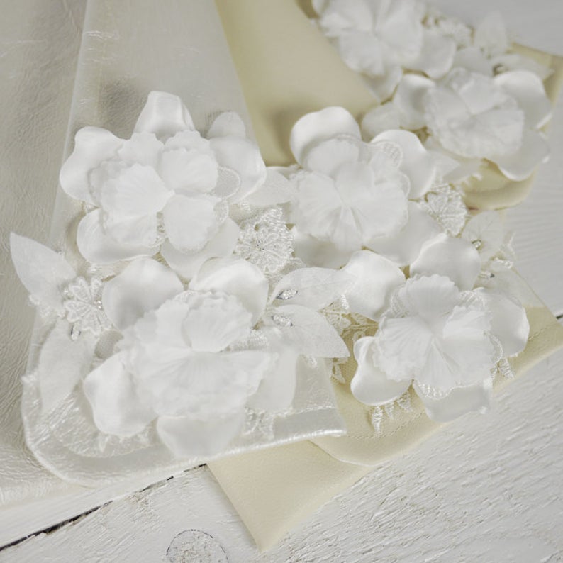 Deze 100% handgemaakte bruids Clutch is versierd met een prachtige floral design.